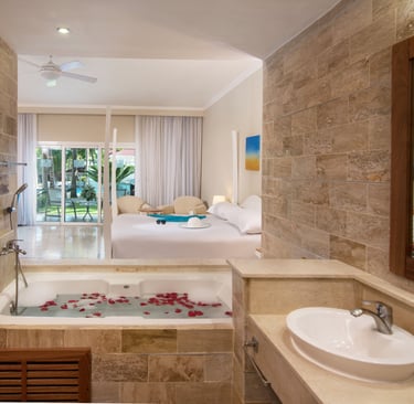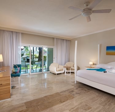 Nuestros Beach Studios tienen mobiliarios modernos en blanco y bañera tipo Jacuzzi así como también algunas habitaciones con vista al mar, mientras que las Spa Suites cuentan con muebles en madera oscura, Son solo para adultos y tienen vista hacia el Spa Yin Yang. Nuestras habitaciones Estándar cuentan muebles en madera oscura y tienen hermosas vistas a la montaña. Casi todas nuestras acomodaciones cuentan con televisores plasma, mientras que cada una de las acomodaciones sigue el mismo patrón de lujo que brindamos a nuestros clientes como baños con apliques de Marmol, secadores de pelo entre otros. Cada tipo de habitación cuentan con 1 Cama King o 2 camas Queen. Algunas habitaciones incluyen bañeras de hidromasajes, así como también terraza o balcón, haciendo de Cofresi Palm Beach & Spa Resort la escapada de lujo perfecta para parejas y familias