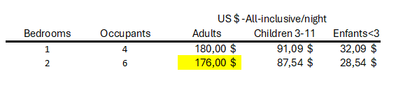 *Prices based on full occupancy