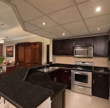 Todos los Estudios y Suites están decorados con maderas en tonos oscuros y de alta calidad, utensilios y electrodomésticos en acero inoxidables. Los detalles más pequeños han sido cuidadosamente elaborados para brindarle a nuestros huéspedes el mayor lujo y comodidad posible, haciendo de Presidential Suites una de las experiencias más relajante, agradable y satisfactoria