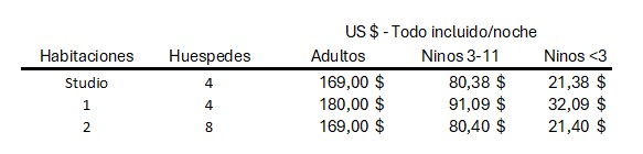 *Precios basados en ocupacion completa